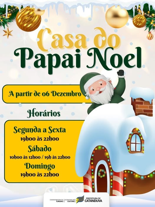 A magia já está garantida em Catanduva! A Casa do Papai Noel abre a partir do dia 06 de dezembro, trazendo encanto, luzes e aquele clima especial que só o Natal proporciona.